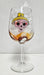 Medium: Individually hand painted wine glasses. Paint is double bake and dishwasher safe.