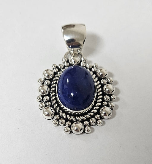 View full detailsMaterials: Sterling Silver and Lapis Size: 1 7/8" Long x 1 1/8" wide Teardrop shape Lapis stone set in sterling silver. Handmade sterling silver...